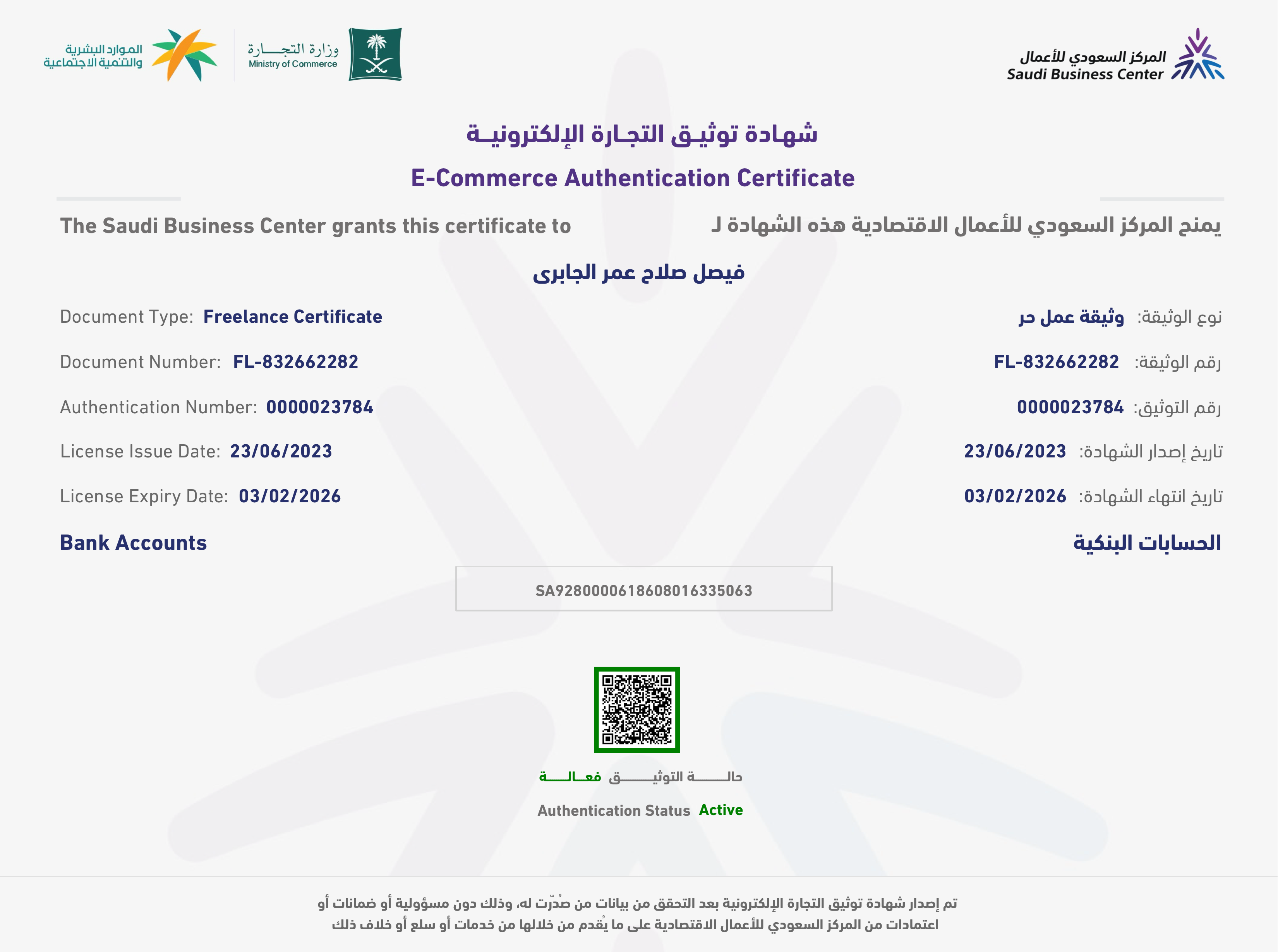 للتأكد من صحة الوثيقة الرجاء مسح الباركود الظاهر في الصور.